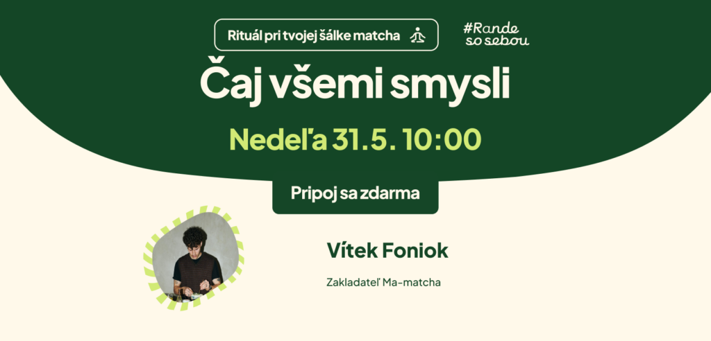 Doobedie začneme rituálom prípravy matchy, kde sa ponoríme práve do tohto procesu. Cez zapojenie všetkých zmyslov sa spomaľujeme a vraciame viac do prítomnosti – preč od neustáleho prúdu myšlienok a povinností. Možno sa na chvíľu prenesieme aj ďalej na miesta, kde matcha vzniká.